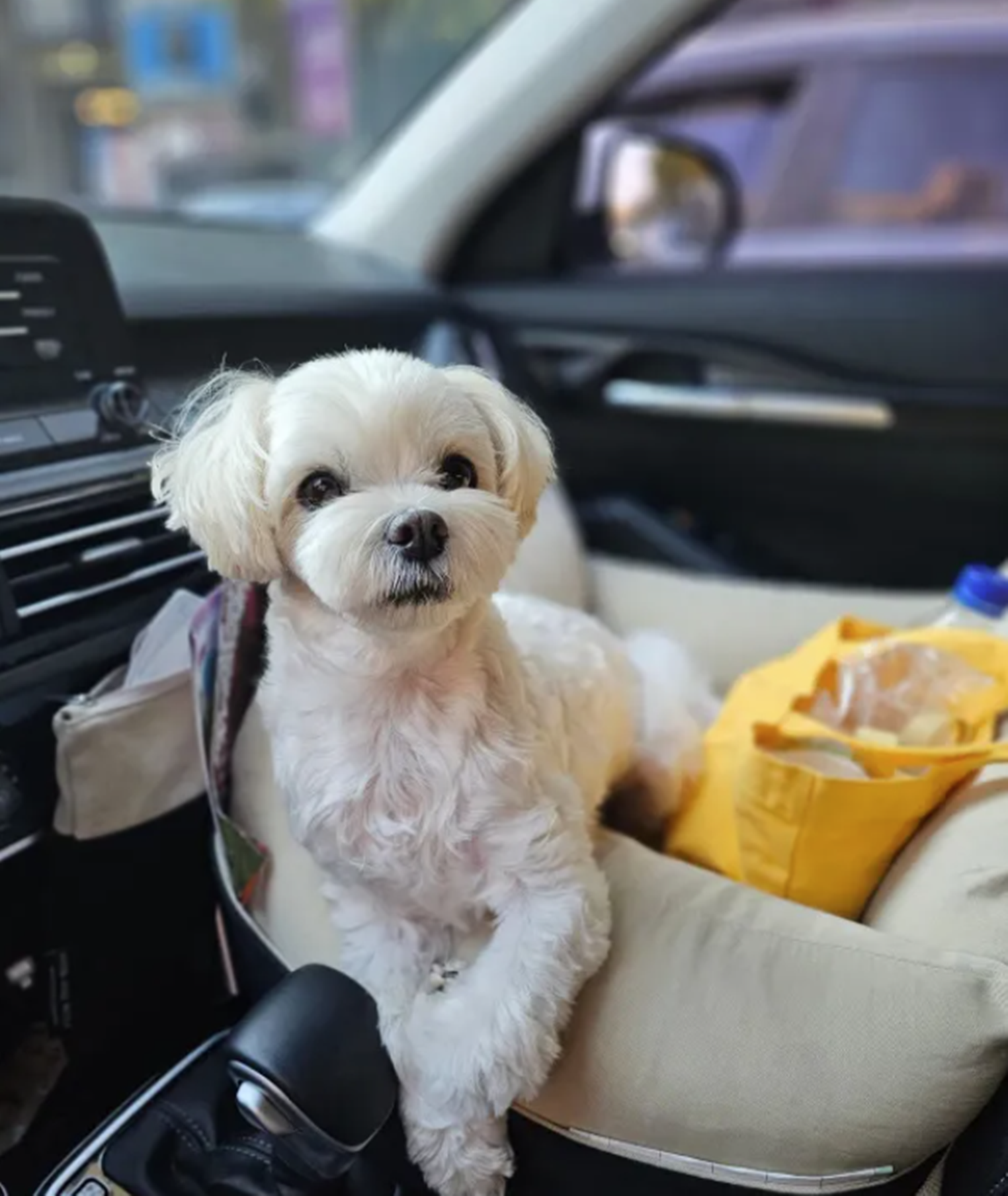 먼저 강아지를 꼭 이동 수단에 태워주세요. 목줄만 한 상태나 품에 안는 방식은 대부분의 매장에서 제한될 수 있어요.